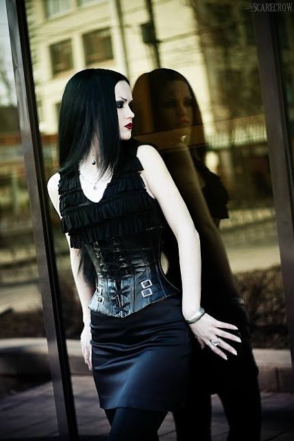 Baskets noires avec des noeuds de dentelles, des pics de métal, un collant noir et graphique malgré la saison, des jambes merveilleuses, une jupe crayon entre vinyl et jersey, une coupe originale, un chemisier blanc, eh bien non, elle sert en noir intégral. Version gothique, dentelles, voile noir, doublure noire et ainsi une élégance bien à elle, un serre-taille corseté à la taille. Surtout avec sa coiffure et ses yeux. Deux détails, deux fulgurances de sa féminité, de son allure, elle rayonne avec deux traits parfaits d'eye-liner à chaque coin de ses yeux noirs, des cheveux en version roulé-rétro, une star est là. J'observe tant que je déguste cette personne que l'on pousserait hors de nos normes, de nos frontières dans des cases noires et blanches du costume de serveuse parfaite, une personne différente et étonnement normale. Efficace, même face à mon blanc, mon silence, perdu dans mes pensées, ma carte effacée devant moi, j'ai commandé une soupe et une assiette de choses grillées. Quelle sauce ? elle insiste avec un sourire et cette voix chaude. J'hésite, je ne sais plus, je ne vois qu'elle, sa beauté, sa vérité.